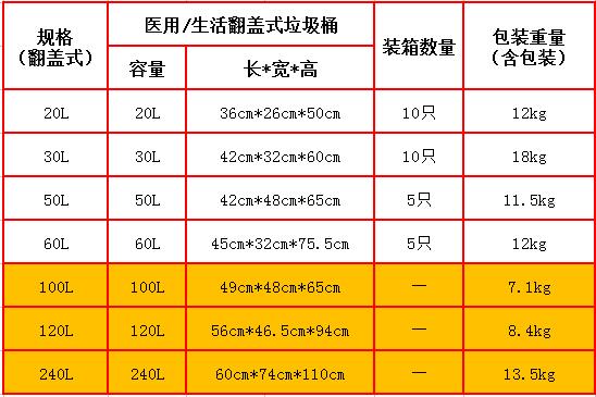 100L/120L/240L医疗/生活翻盖垃圾桶